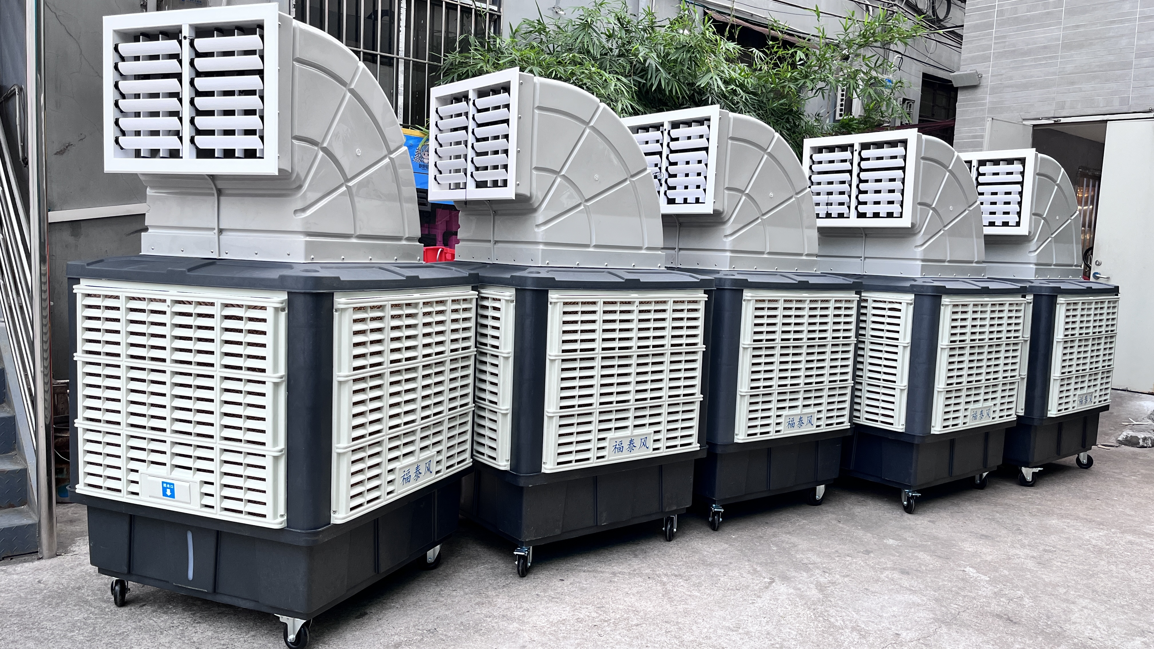 夏季有的工廠不想要外墻安裝的環(huán)保空調(diào)想用移動式冷風扇降溫,那么我們也想到你的顧慮了,擁有靈活的萬向輪可以推動移動環(huán)?照{(diào)去各個角落,高水位的水箱也滿足客戶加水麻煩問題。此款福泰環(huán)保空調(diào)變頻定速220V的都有根據(jù)你的要求我們都能生產(chǎn)。由于是環(huán)保空調(diào)廠家直接銷售所有價格方面也是相當實惠的,F(xiàn)T-18000風量1.1kw的環(huán)?照{(diào)降溫覆蓋面積也能達到150平方,出風口也可以用2個風咀和多個風咀出風方式滿足客戶多個方位要降溫和送風。對于很多想回去插電就能使用的客戶這款主機很適合您哦!